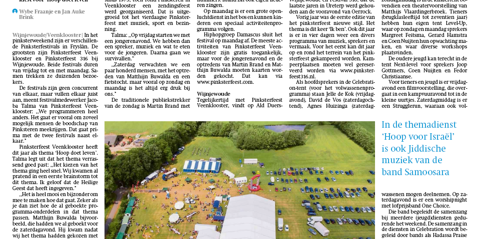 We staan in de krant: het Friesch Dagblad heeft een artikel op 16 mei geplaatst over de pinksterfeesten in noord Nederland. Heb jij het ook gezien?